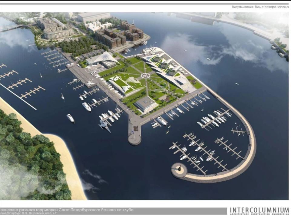 Реконструкция яхт-клуба на Петровском острове охватит территорию 12,9 га, следует из материалов архитектурной концепции, разработанной студией Intercolomnium