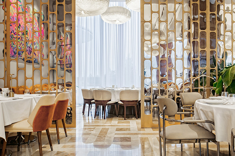 Архитектурное решение, разработанное студией Krivtsova& Redina (команда делала проекты для многих модных мест: от Мари Vanna Ginza Project в Лондоне и Баку до московских ресторанов «КрабыКутабы» Александра Раппопорта и Meraki Аркадия Новикова), органично вписало комплекс в прибрежный пейзаж. Стиль пространства определяют кремовые, фисташковые тона и дорогие натуральные материалы: кожаные панели, мраморные полы, древесные фактуры и акцентные элементы из латуни роднят лобби отеля и гольф-клуба с обстановкой фешенебельной круизной яхты.