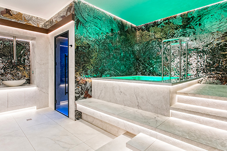 Термальная зона с финской сауной, хаммамом, ледяной купелью и «душем впечатлений» доступна гостям отеля без ограничений по времени. Здесь можно провести целый день, наслаждаясь расслабляющими процедурами и роскошным дизайном, изюминка которого — зеркальная мозаика на стенах, которая группируется в узоры абстрактного панно с медитативным эффектом.