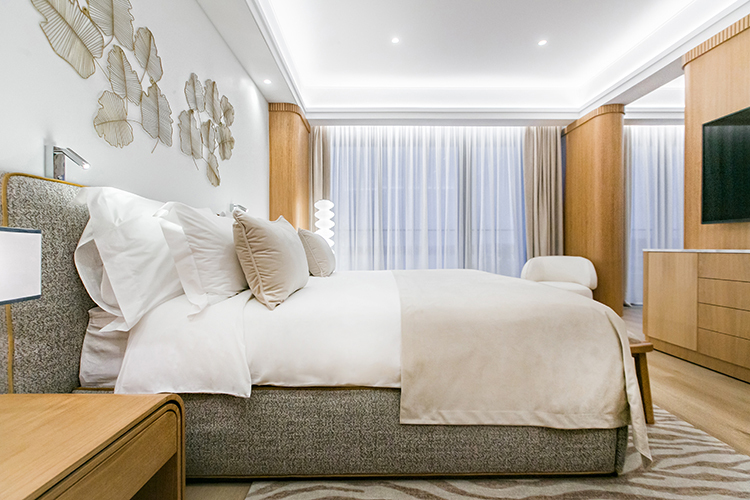Кровать формата king size*, застланная белоснежным текстилем от Togas, манит сразу погрузиться в объятия неги и сна. Удержать от немедленного воплощения этого намерения способна разве что оборудованная всевозможными девайсами ванная комната с премиальной итальянской косметикой Comfort Zone — персональное место силы, где можно отвлечься от повседневных проблем и привести в порядок мысли и тело.